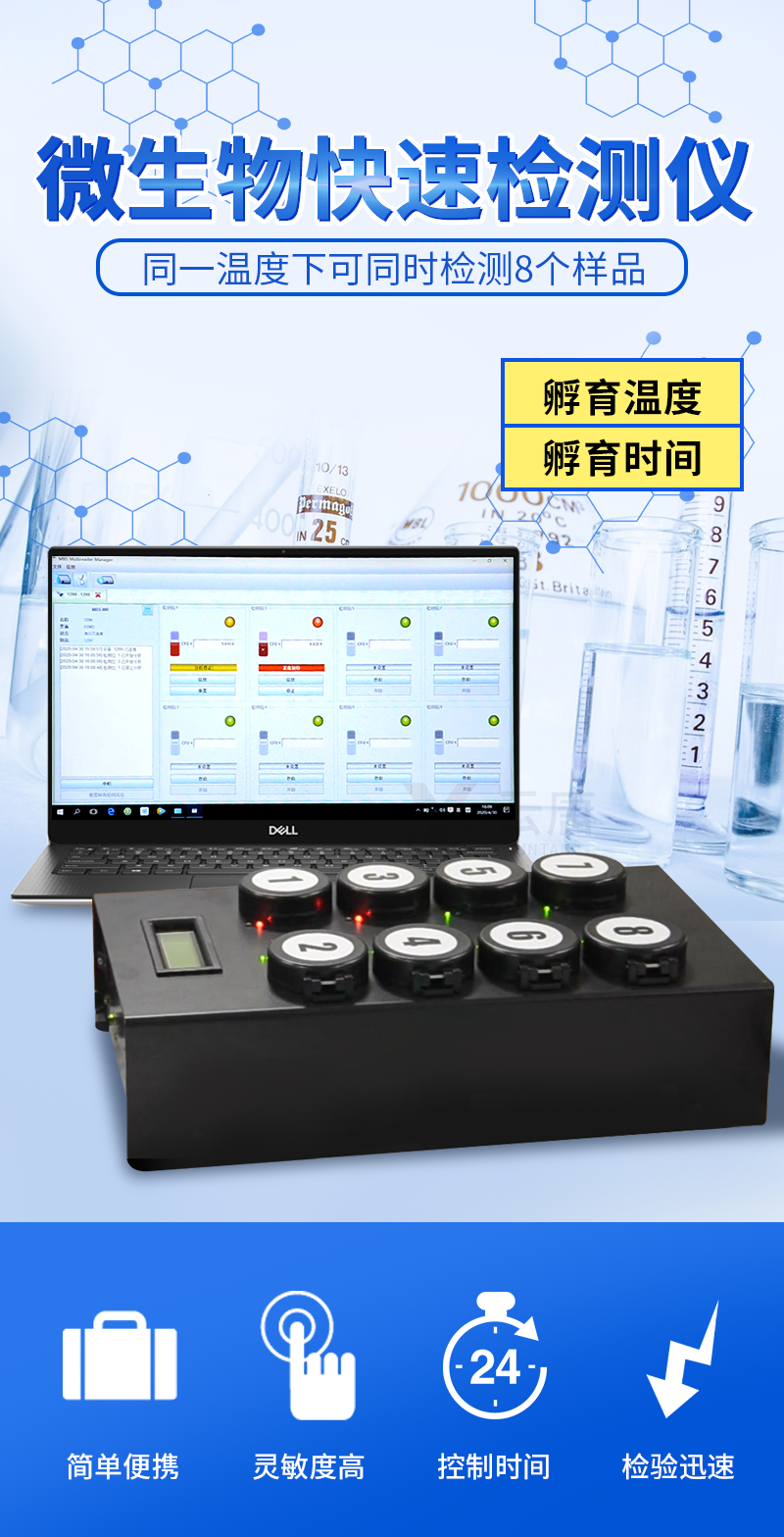 4) 檢測樣本只需1ml/1g;同一溫度下可同時(shí)檢測8個(gè)樣品;