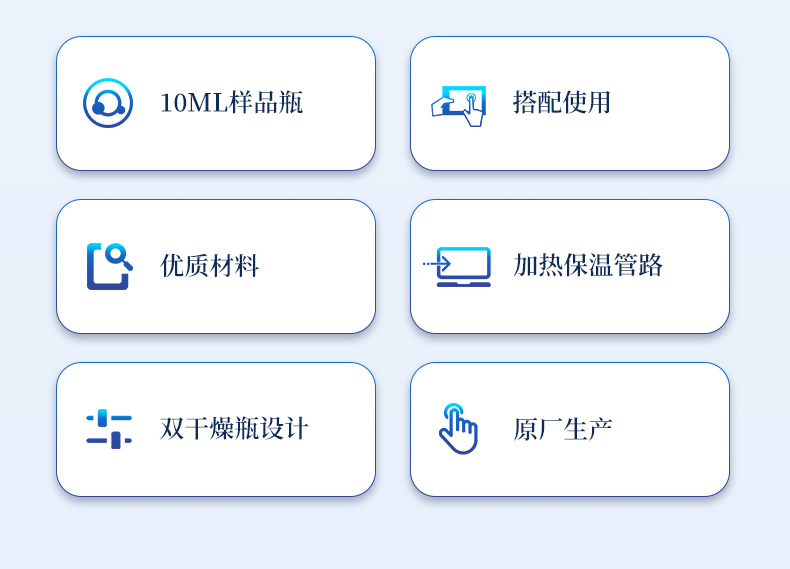 | 1、10ml樣品瓶:使用四氟與硅膠復(fù)合墊片,高溫條件下不會(huì)釋放可能產(chǎn)生副反應(yīng)的物質(zhì) | 2、雙干燥瓶設(shè)計(jì),有效降低氣源中的水分干擾 | 3、加熱保溫管路,防止水汽在輸送過(guò)程中冷凝,提高測(cè)試準(zhǔn)確性 |