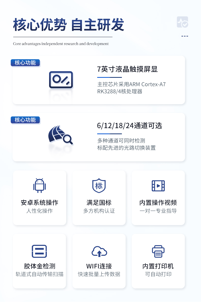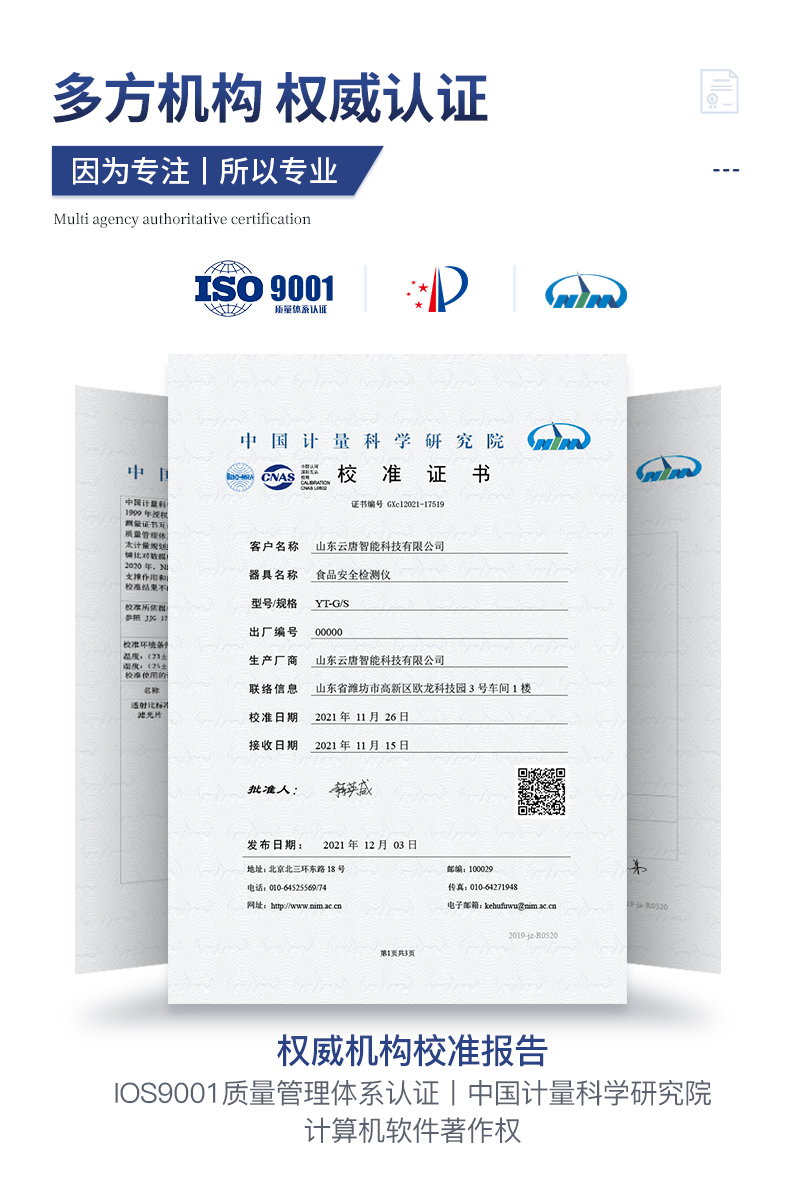 | 該儀器通過光電子技術(shù)對反應(yīng)生成物的反射率進(jìn)行分析測試,定量或定性分析樣品中待測物的含量。 | 安卓智能操作系統(tǒng),7英寸高靈敏真彩觸摸屏,更加**和人性化操作, | 儀器具有4G無線聯(lián)網(wǎng)、wifi聯(lián)網(wǎng)上傳、GPRS無線遠(yuǎn)傳功能,快速上傳數(shù)據(jù)。 | 便攜式儀器,便于現(xiàn)場攜帶操作,主機(jī)重量不大于3kg。 | 具有可見光光源,可檢測可見光信號,檢測值0~30000。 | 具有常用打印機(jī)數(shù)據(jù)線接口,直接打印結(jié)果;配備USB接口,可連接網(wǎng)絡(luò)。 | 具有多個食品安全檢測項目,開放平臺,可以增減檢測項目。 | 檢測通道:12個檢測通道,可以同時測試多個樣品,每個樣品由程序控制分別獨立工作,不會互相干擾。 | 以模擬反射率的標(biāo)準(zhǔn)片為50%附近時為代表,精密度CV值≤0.8%。 | 供電電源:(220±22V)~50Hz±1Hz,供電電源電壓波動不應(yīng)超過220V AC±10%。 | 內(nèi)置打印機(jī),實時打印檢測結(jié)果。內(nèi)置大容量電池,便于現(xiàn)場執(zhí)法檢測。 | 高靈敏度,高檢測精度,高重復(fù)性精度,掃描式高精度光學(xué)傳感器。 | 機(jī)身儲存上萬條檢測結(jié)果,也可以導(dǎo)出儲存。 | 開放端口,可連接監(jiān)管平臺數(shù)據(jù)庫,界面有上傳操作。 |