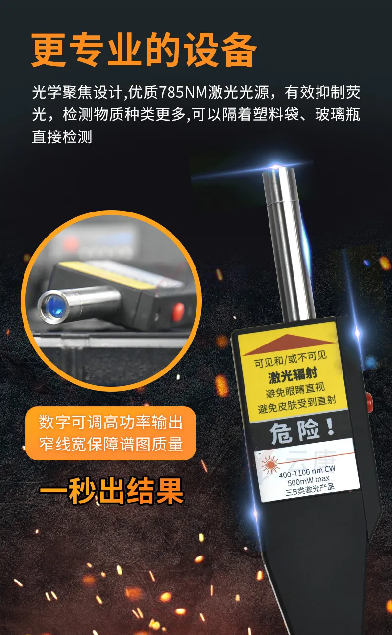 光學聚焦設計:可以隔著塑料袋、玻璃瓶直接檢測