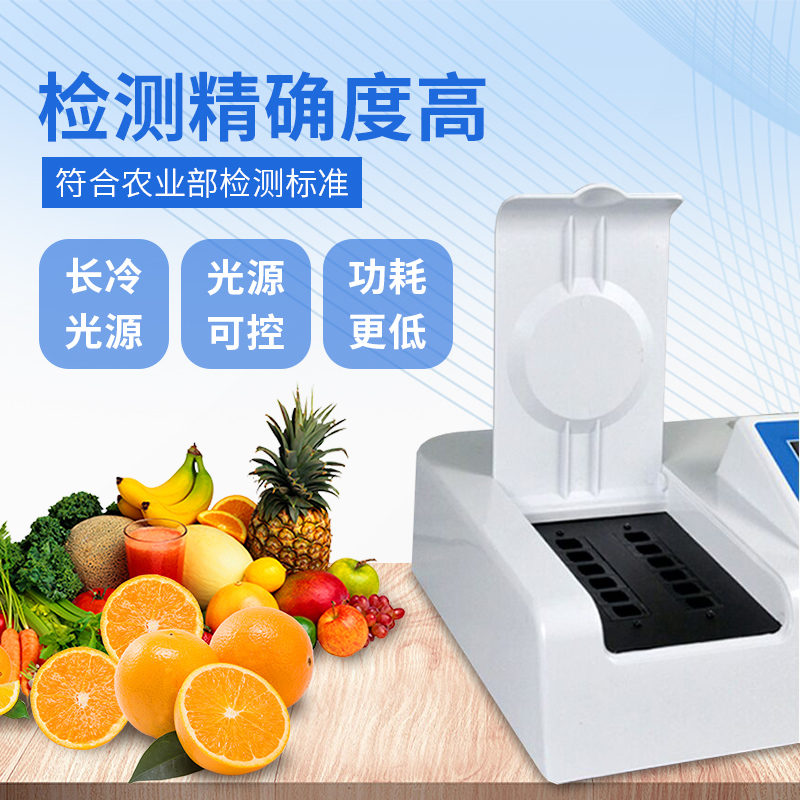 檢測標(biāo)準(zhǔn):依據(jù)國家標(biāo)準(zhǔn)方法(GB/T5009.199-2003)以及世界衛(wèi)生組織WHO、世界糧農(nóng)組織FAO殘留農(nóng)藥檢測標(biāo)準(zhǔn)、世界環(huán)境保護(hù)局EPA參照攝入量等要求來設(shè)計。采用酶抑制率比色法對水果、蔬菜等農(nóng)林產(chǎn)品中有機(jī)磷和氨基甲酸酯類農(nóng)藥含量進(jìn)行快速準(zhǔn)確的檢測,乙酰膽堿酯酶和丁酰膽堿酯酶試劑均可以使用,符合國家標(biāo)準(zhǔn)和農(nóng)業(yè)部標(biāo)準(zhǔn)的要求。