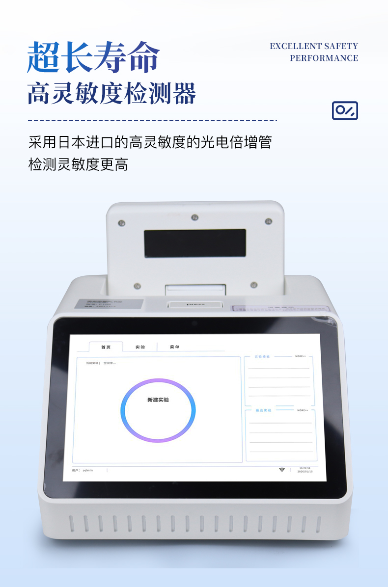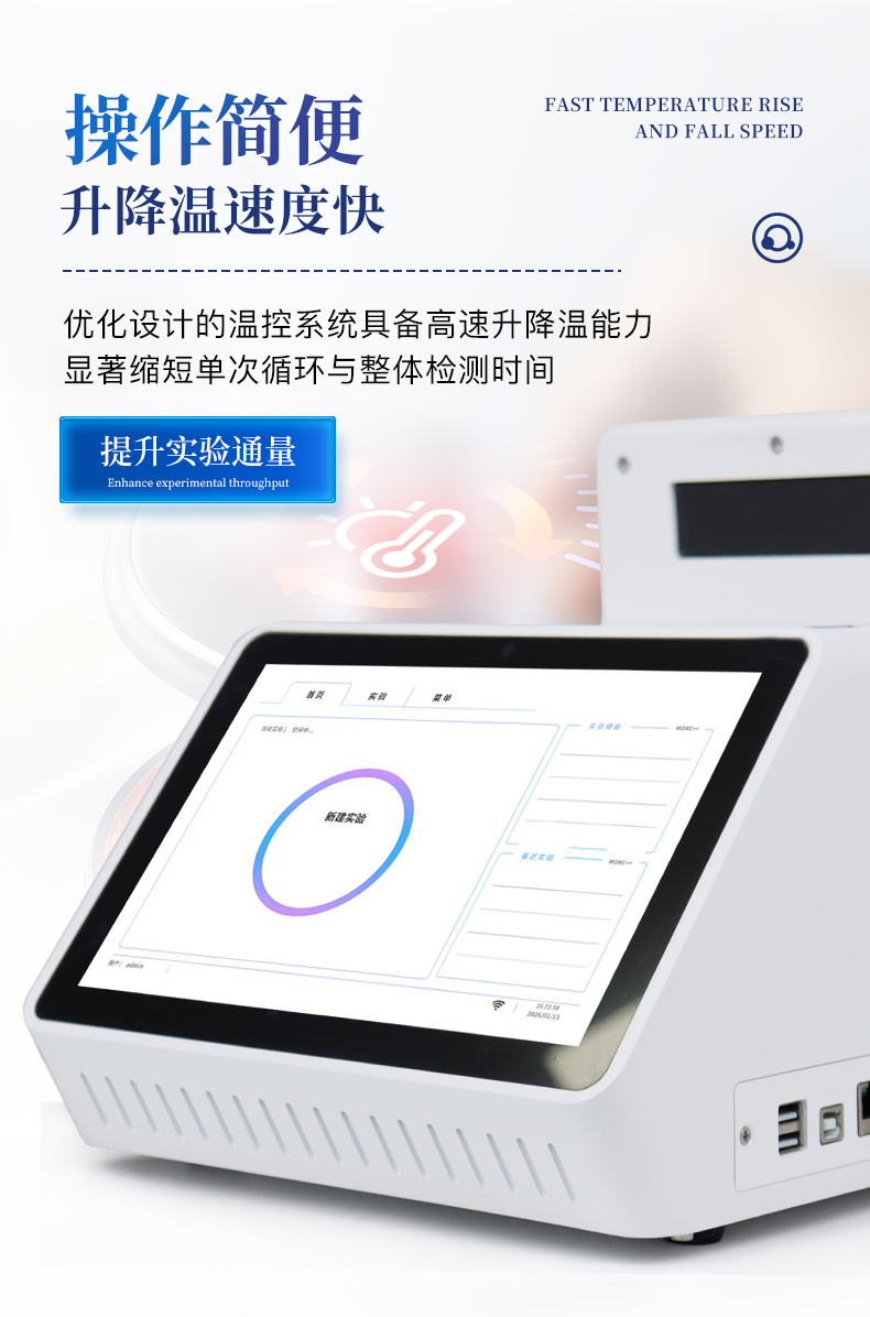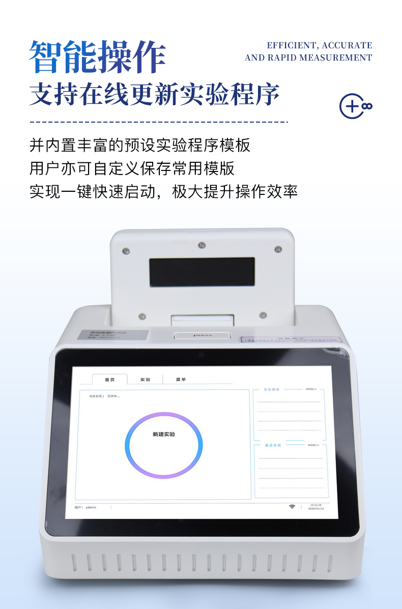 1.智能操作系統(tǒng),實驗盡在掌握 A雙模式靈活控制:支持通過儀器觸摸屏獨立運行,也支持通過電腦軟件進行遠程控制與數(shù)據(jù)管理,適應不同實驗場景需求。 B程序更新與預設:支持在線更新實驗程序,并內(nèi)置豐富的預設實驗程序模板,用戶亦可自定義保存常用模版,實現(xiàn)一鍵快速啟動,極大提升操作效率。 C極簡啟動體驗(可選配):可定制集成攝像頭掃描系統(tǒng),用戶只需掃描樣品板或程序卡的二維碼,即可自動識別并調(diào)用對應實驗程序,簡化流程,避免人為設置錯誤。 D操作簡單:無論是觸摸屏界面還是電腦軟件,均設計得直觀易懂,新用戶也能快速上手。預置常用程序模板,進一步簡化操作流程。 2.精準穩(wěn)定的溫控與光學核心 A長久精準的溫控系統(tǒng):采用進口***TEC半導體制冷模塊,控溫精準(±0.1°C),孔間溫度均勻性**(≤±0.3°C)。系統(tǒng)穩(wěn)定性卓越,長期使用性能衰減小,校準周期長達數(shù)年,顯著降低維護成本與運營中斷。 B免維護的靈敏光學系統(tǒng):配備4個獨立LED光源與4個獨立光電二極管檢測器,實現(xiàn)四通道熒光同步精準檢測。采用超長壽命進口光源,設計壽命期內(nèi)免維護,無需額外校準或更換,保障檢測結(jié)果長期一致性與高靈敏度。 C卓越的數(shù)據(jù)質(zhì)量:實驗線性相關性高(R2≥0.999),重復性優(yōu)異(孔間CV值低),確保定量結(jié)果準確可靠,數(shù)據(jù)置信度高 3.**便捷的數(shù)據(jù)與輸出管理 A多重數(shù)據(jù)導出方式:支持通過USB存儲設備直接拷貝,或經(jīng)由Wi-Fi無線網(wǎng)絡傳輸數(shù)據(jù)至本地服務器或云端,方便靈活,滿足各類實驗室數(shù)據(jù)管理習慣。 B豐富的報告導出與打?。褐С稚刹С龆喾N格式(如PDF、Excel)的實驗報告。儀器兼容USB熱敏打印機、藍牙無線打印機及常規(guī)A4打印機,可直接在儀器上或通過電腦一鍵導出并打印專業(yè)報告,便于結(jié)果存檔與即時分享。 4.快速**與堅固耐用 A升降溫速度快:優(yōu)化設計的溫控系統(tǒng)具備高速升降溫能力,顯著縮短單次循環(huán)與整體檢測時間,提升實驗通量。 B超長使用壽命:核心部件均選用工業(yè)級耐用材料與設計,整機運行穩(wěn)定可靠,致力于為用戶提供長久的投資回報。