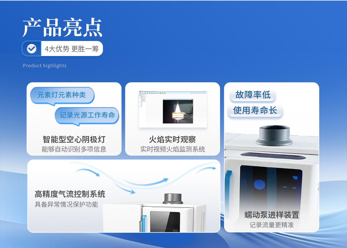 標(biāo)準(zhǔn)曲線的制作只需一個**濃度點的標(biāo)準(zhǔn)溶液,儀器可進行高濃度樣品自動稀釋、自動清洗管路等功能,極大地節(jié)省了標(biāo)準(zhǔn)樣品制備時間和使用成本。 5、火焰實時觀察