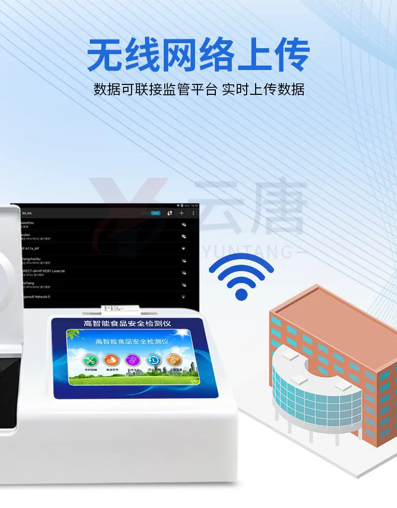 8、儀器帶有監(jiān)管平臺。數(shù)據(jù)可局域網(wǎng)和互聯(lián)網(wǎng)數(shù)據(jù)上傳,檢測結(jié)果直接傳至食品安全監(jiān)管平臺。進行區(qū)域食品安全監(jiān)管及大數(shù)據(jù)分析處理,檢測區(qū)域食品安全長短期動態(tài),達到食品安全問題預(yù)估、預(yù)警