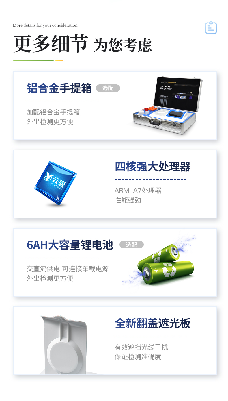 2、儀器檢測(cè)模塊標(biāo)準(zhǔn)化、智能化,檢測(cè)項(xiàng)目可隨意自由組合。檢測(cè)箱體內(nèi)置多個(gè)標(biāo)準(zhǔn)檢測(cè)單元,檢測(cè)模塊可以調(diào)整配置。