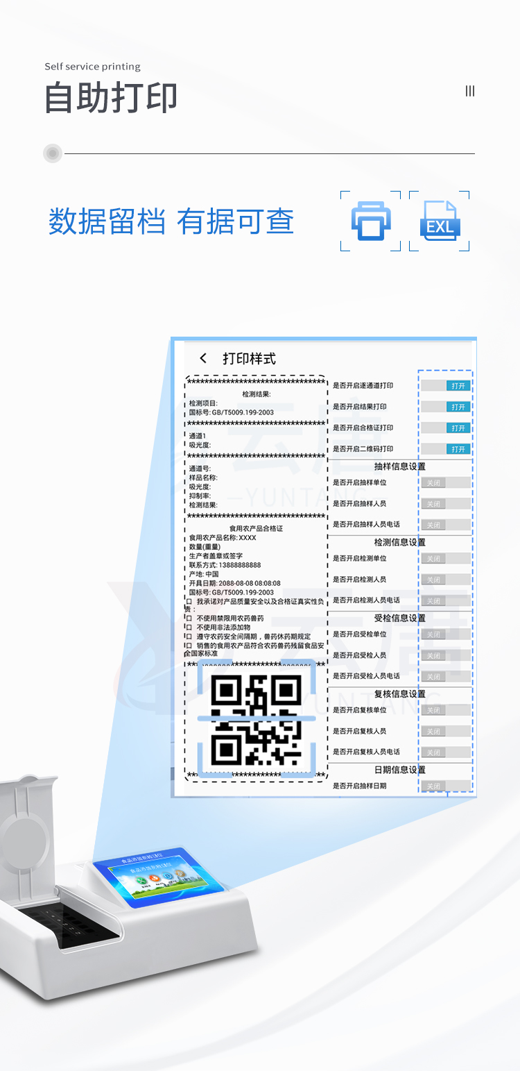 4、 配備嵌入式熱敏打印機(jī),可選擇手動(dòng)打印或者自動(dòng)打印,三分鐘出打印結(jié)果。