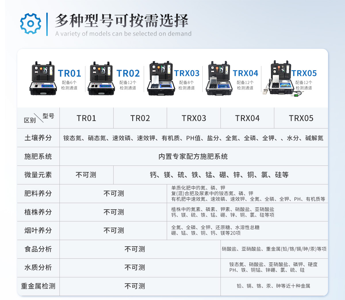 配套齊全:該儀器集藥、器、儀為一體,攜帶方便,相當(dāng)于一個(gè)小型移動實(shí)驗(yàn)室,無需用戶自配附件,亦可靈活野外流動測試。適于農(nóng)業(yè)服務(wù)部門或農(nóng)資經(jīng)銷商、合作社、肥料廠商、大種植戶測土施肥。
