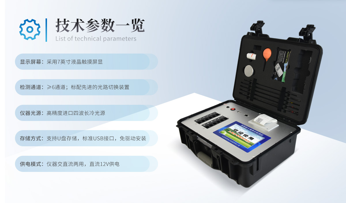 配套齊全:該儀器集藥、器、儀為一體,攜帶方便,相當(dāng)于一個(gè)小型移動(dòng)實(shí)驗(yàn)室,無(wú)需用戶自配附件,亦可靈活野外流動(dòng)測(cè)試。適于農(nóng)業(yè)服務(wù)部門(mén)或農(nóng)資經(jīng)銷商、合作社、肥料廠商、大種植戶測(cè)土施肥和鑒別肥料真假。