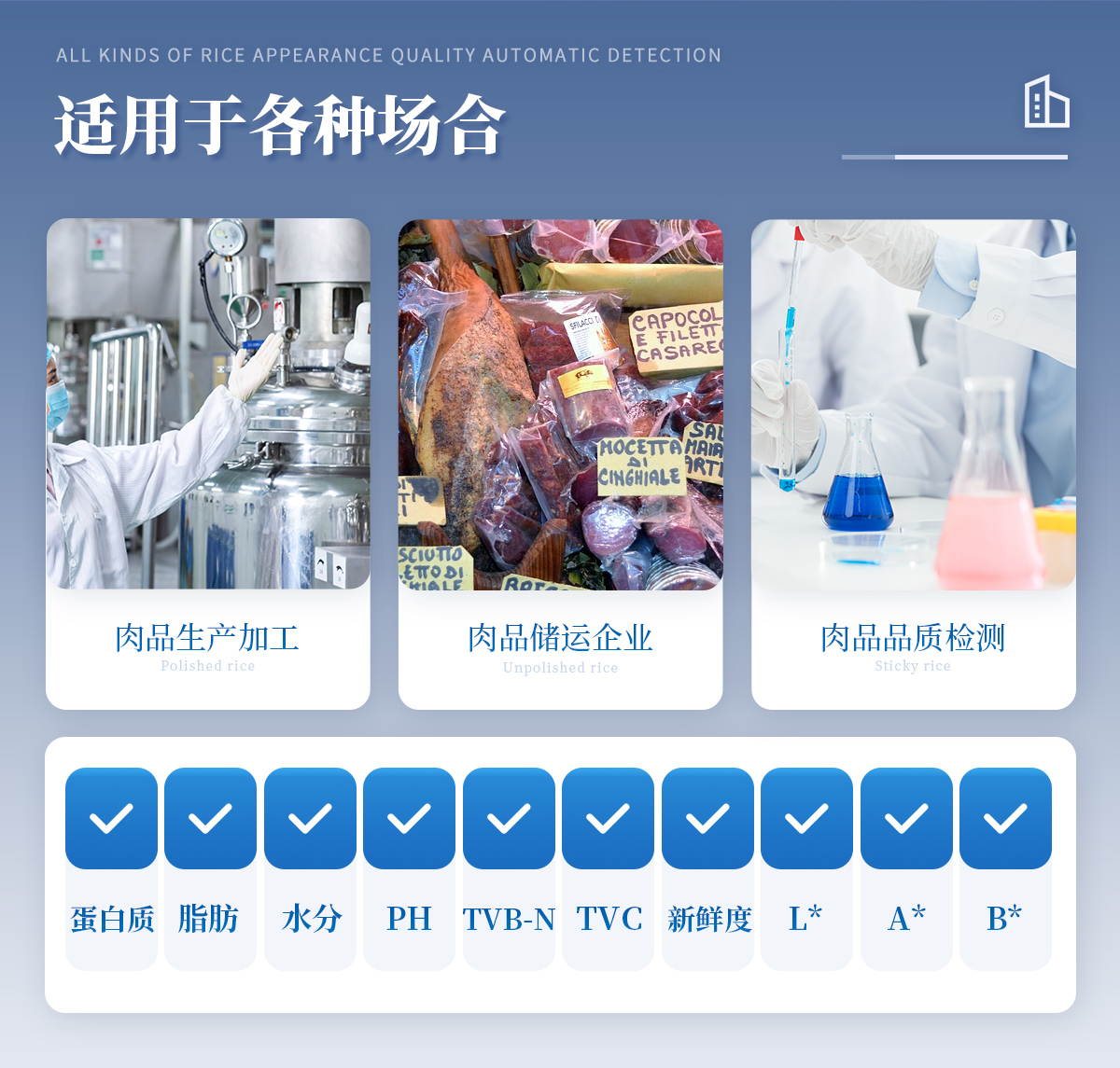 1. ※檢測指標:蛋白質(zhì)、脂肪、水分、PH、TVB-N、新鮮度、L*、A*、B*