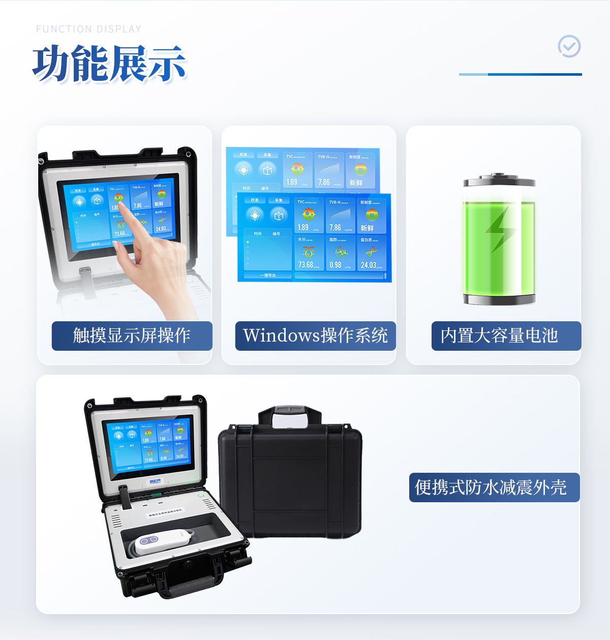 13. 采用便攜式手提箱設計,外殼為ABS防沖擊材料,適合在現(xiàn)場快速檢測