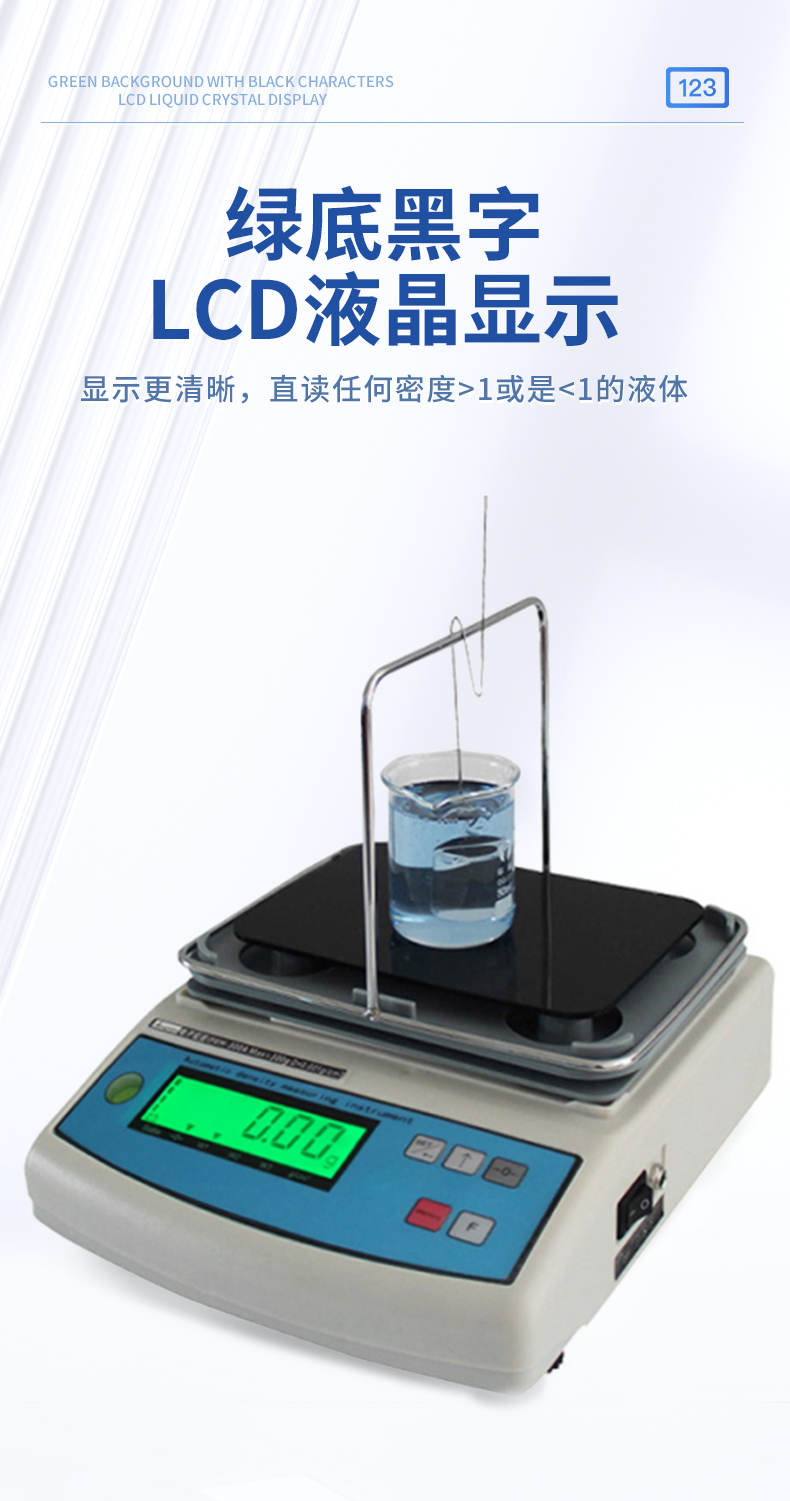 | 1.直讀任何密度>1或是<1的液體.> | 2.具有溫度補(bǔ)償設(shè)定、溶液補(bǔ)償設(shè)定功能,更人性化的操作、更符合現(xiàn)場作業(yè)需求 | 3.密度測量臺(tái)一體注塑成型,安裝方便快速,使用時(shí)間更長. | 4.采用不銹鋼T型架具有極強(qiáng)的耐腐蝕性,專用砝碼掛鉤極大地降低了吊欄線浮力所造成的誤差 | 5.具有密度上、下限功能,可判定待測物的比重合格與否。設(shè)有蜂鳴器裝置 | 6.內(nèi)置蓄電池,選配防風(fēng)罩,更適合現(xiàn)場測試. | 7. 綠底黑字LCD液晶顯示,顯示更清晰 |