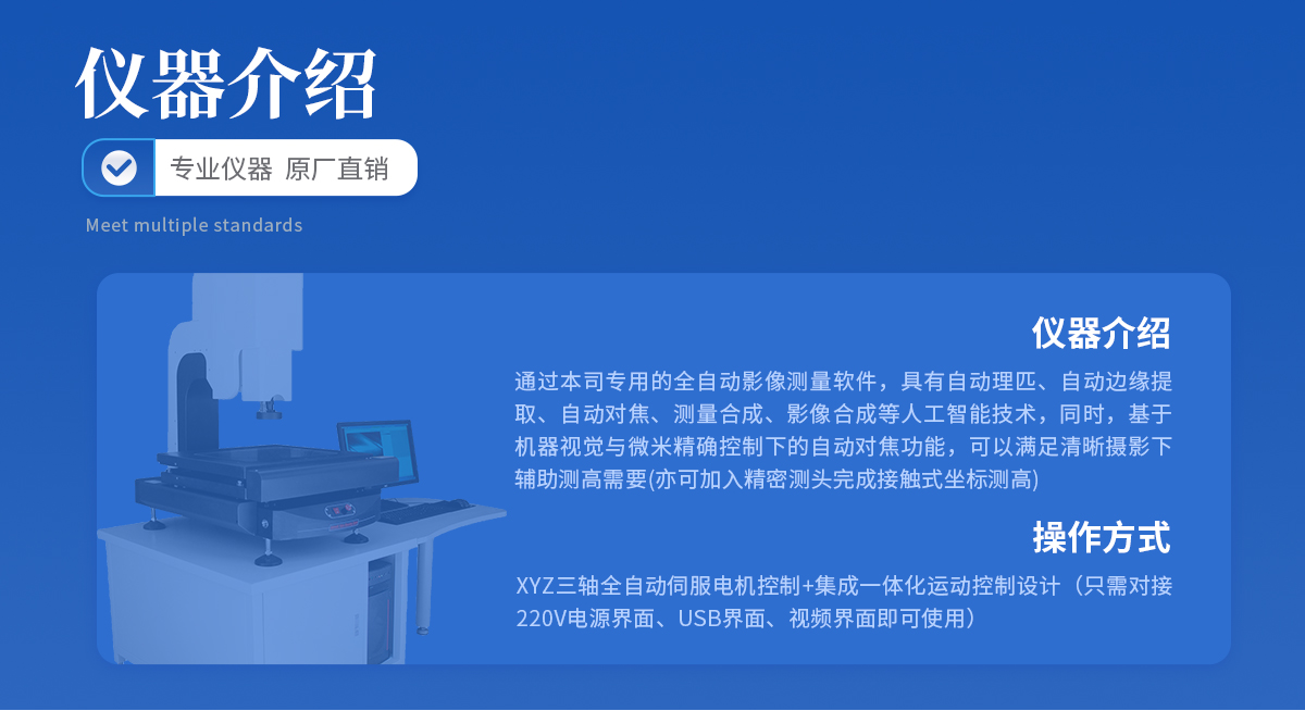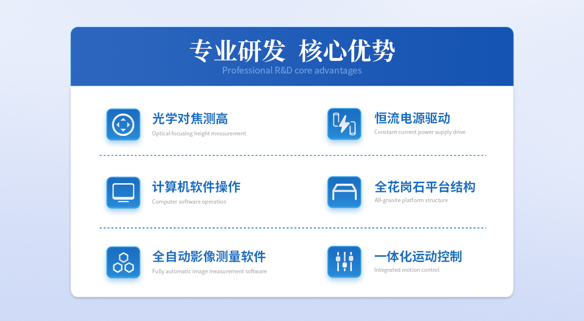 | 儀器基座 高穩(wěn)定性高精度花崗石材質(zhì) 1套 | CCD 700TVL COMST高清彩色CCD(COMST) 1個(gè) | 鏡頭 0.7~4.5 X手動(dòng)卡位鏡頭(萊斯) 1個(gè) | 光柵尺 高精度位移傳感電子尺,分辨率:1μm (精微) 2條 | 導(dǎo)軌 咸陽(yáng)藍(lán)博P級(jí)精密V型導(dǎo)軌(LB) 3組 | 傳動(dòng) 西德無(wú)牙光桿精密傳動(dòng)(西德)、高精密T型絲桿(特制) 3條 | 表面光源 LED恒流環(huán)形冷光源 1個(gè) | 底光源 綠色單顆LED冷光源+雙組透鏡均光平行底光模組 1PCS | 數(shù)據(jù)采集卡 UWC3200 1PCS | 影像測(cè)量軟件 DTV 2.5T手動(dòng)影像測(cè)量軟件 1套 | 光學(xué)校正片 DTV 定制 1塊 | 電纜 AC/DC 5條 | 電壓 AC :100-240V(全電壓) 1個(gè) |
