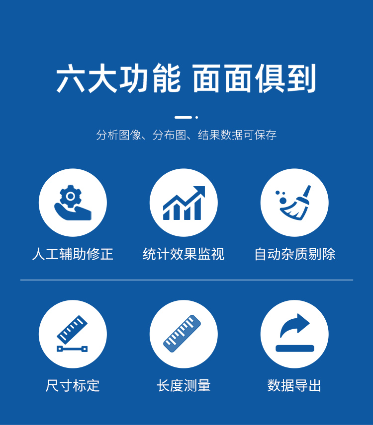 可不等間距地自定義分段直徑,自動(dòng)測(cè)量各直徑段長(zhǎng)度、投影面積、表面積、體積 等,及其分布參數(shù);
