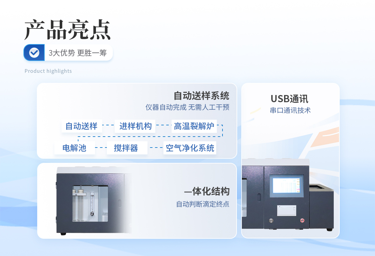 | 1、 手自一體化自動送樣系統(tǒng),將自動送樣、進(jìn)樣機(jī)構(gòu)、高溫裂解爐、電解池、攪拌器、空氣凈化系統(tǒng)等部件巧妙地結(jié)合在一起,使儀器結(jié)構(gòu)更加緊湊,更加合理、更加穩(wěn)定。可在線式插隊添加樣品,無需人工送樣,自動化程度高,若樣品少也可采用手動送樣方式。 | 2、采用—體化結(jié)構(gòu),自動判斷滴定終點(diǎn),縮短了實(shí)驗(yàn)時間。所有關(guān)鍵部件均采用了設(shè)計理念及進(jìn)行了嚴(yán)格的控制,確保儀器能長時間穩(wěn)定運(yùn)行。 | 3、采用特別的數(shù)據(jù)采集網(wǎng)絡(luò)及多級校正技術(shù),確保高、中、低硫含量測試結(jié)果的準(zhǔn)確性。 | 4、送樣機(jī)構(gòu)采用電子電解液分子濃度采集電路,可靠性高,不會產(chǎn)生過電解現(xiàn)象。 | 5、串口通訊技術(shù),可采用usb通訊,兼容性好,具有廣泛的適用性。 | 6、自由設(shè)置送樣時間及預(yù)置溫度,采用進(jìn)口霍爾元件控制送樣位置。 | 7、采用剛玉瓷舟,減少卡樣的可能。一次可放1-24個樣由程序控制實(shí)現(xiàn)自動升溫、控溫、送樣、測定,結(jié)果自動存盤、自動打印,并可中途在線式插隊添加試樣,大大地提高了工作效率,真正實(shí)現(xiàn)無人值守; | 8、采用庫侖滴定法進(jìn)行測定,測定時間可根據(jù)不同試樣自動判斷,速度優(yōu)于艾士卡重量分析法和高溫燃燒中和法; |
